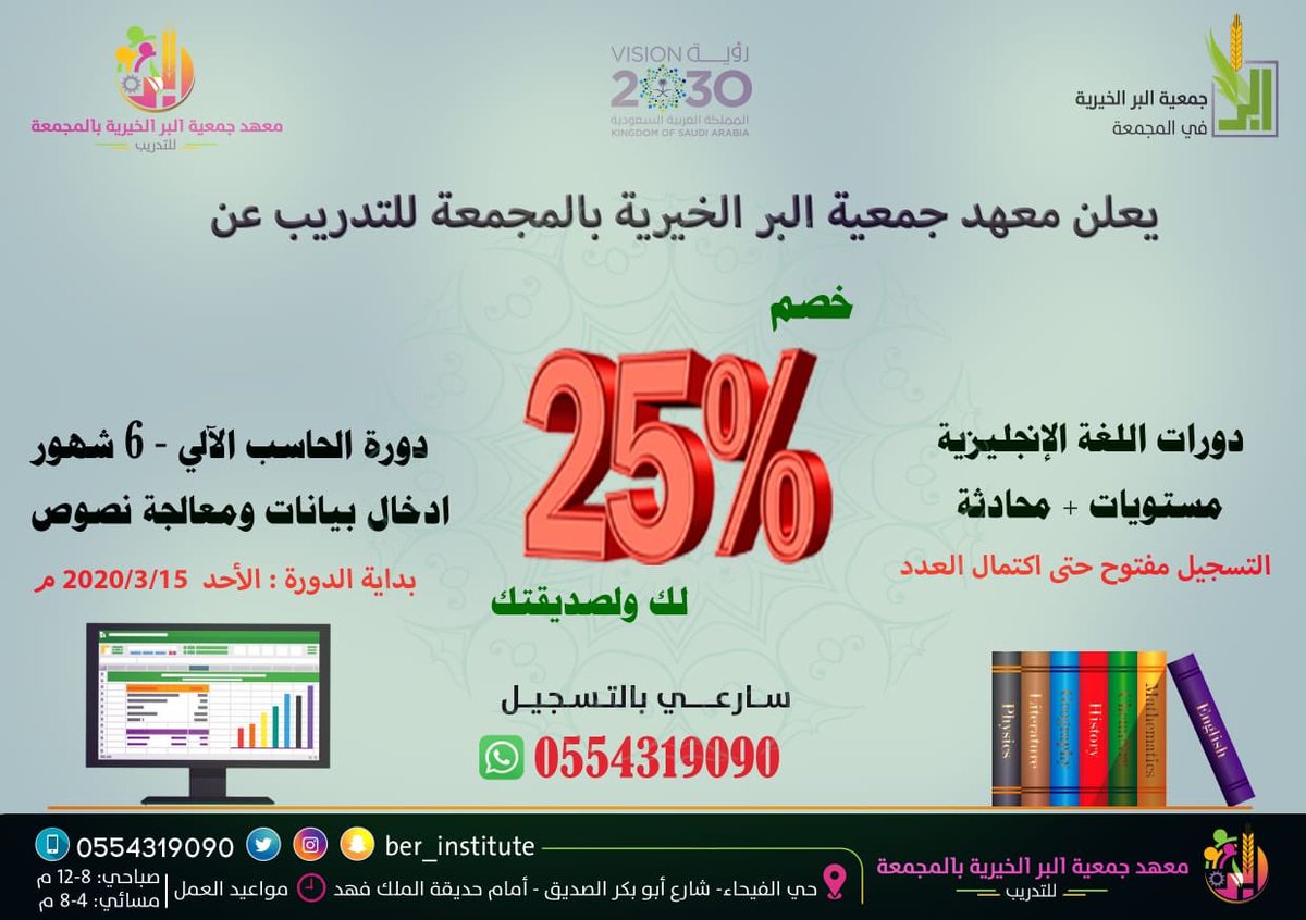 معهد جمعية البر الخيرية بالمجمعة On Twitter تم افتتاح معهد جمعية البر الخيرية الشهادة معتمدة من المؤسسة العامة والمقاااااااعد محدودة
