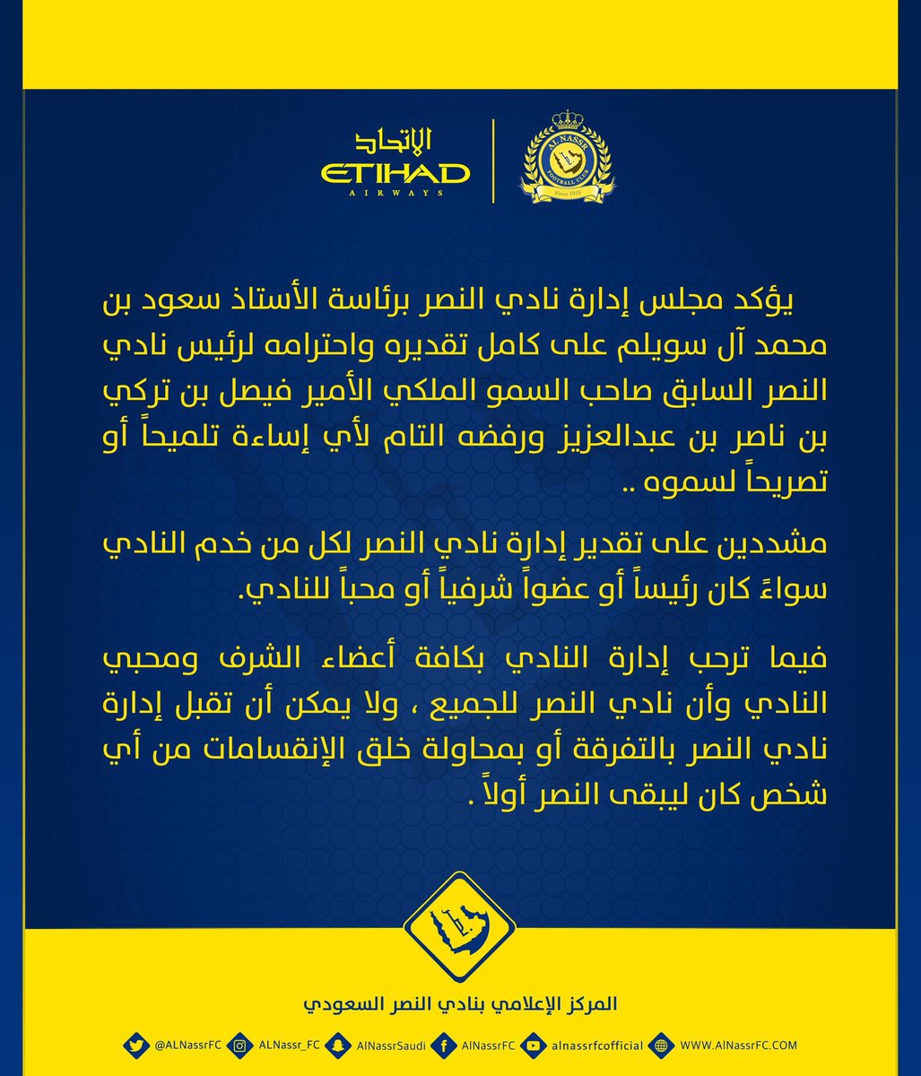 ماجد الأحمري سلمان Auf Twitter بيان محترم جدا وعلى كل نصراوي العمل به تحقيقا للمصلحة هذا ما كن ا نطالب الإدارة السابقة به حينما كان منتدى النصر الرسمي يسلخ رؤساء