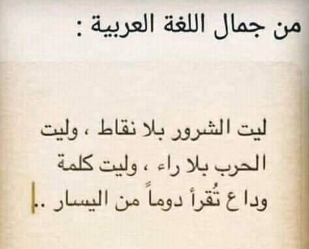 من جمال اللغة العربية ليت الشرور بلا نقاط وليت الحرب بلا راء وليت كلمة وداع