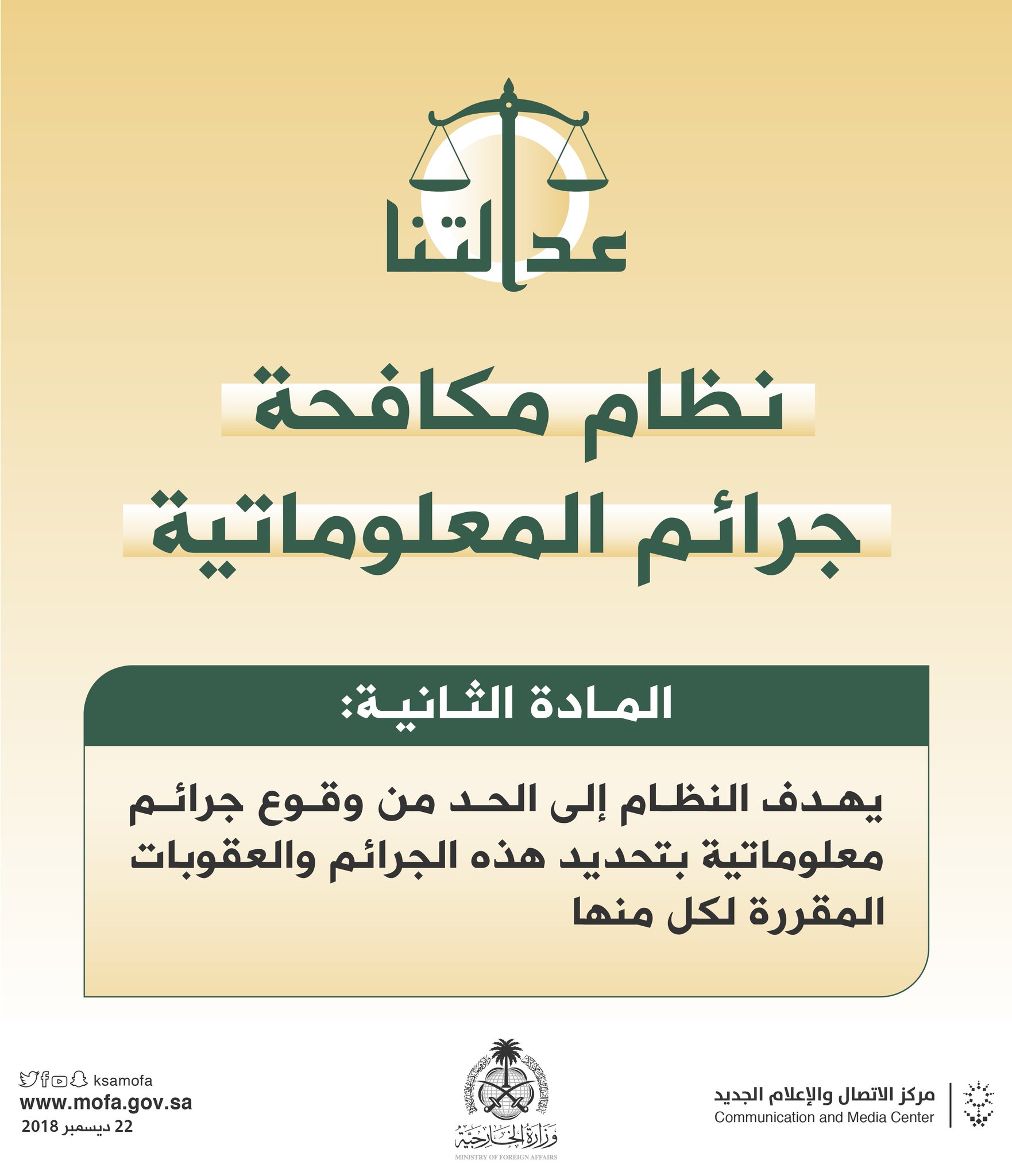 وزارة الخارجية على تويتر عدالتنا تعر ف على الأنظمة السعودية نظام مكافحة جرائم المعلوماتية المادة الثانية